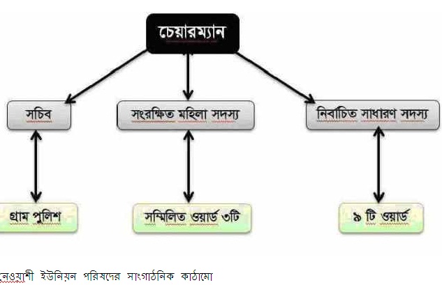 সাংগাঠনিক কাঠামোঃ চেয়ারম্যান-০১জন, ০৯টি ওয়ার্ডে ০৯জন সাধারন সদস্য ও ০৩জন সংরক্ষিত মহিলা সদস্য নিয়ে ইউনিয়ন পরিষদ গঠিত হয়। পরিষদের মেয়াদ ০৫ বছর।